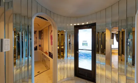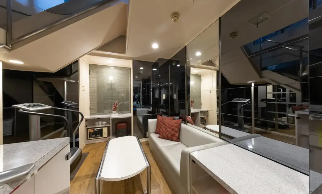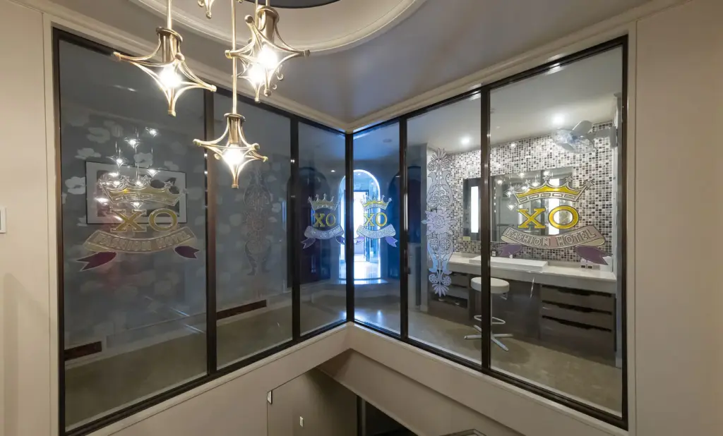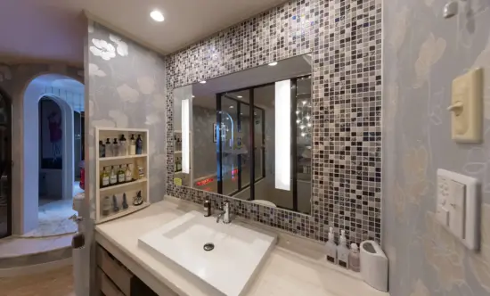 昼は明るく開放的に、夜は照明がきらめき幻想的な雰囲気に変わります。デザイン性と非日常感を兼ね備えた、印象的なひと部屋です。