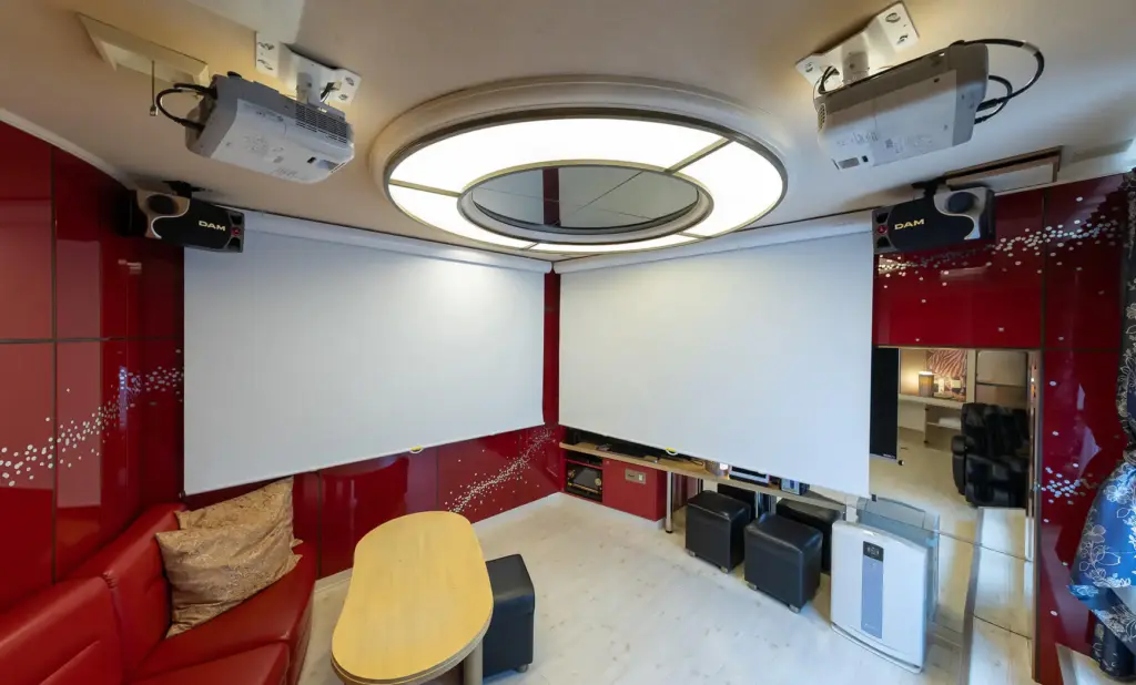 大画面スクリーンに映し出される映像は、まるでプライベートシアター。映画やライブ映像を楽しめば、日常を忘れる贅沢なひとときに。