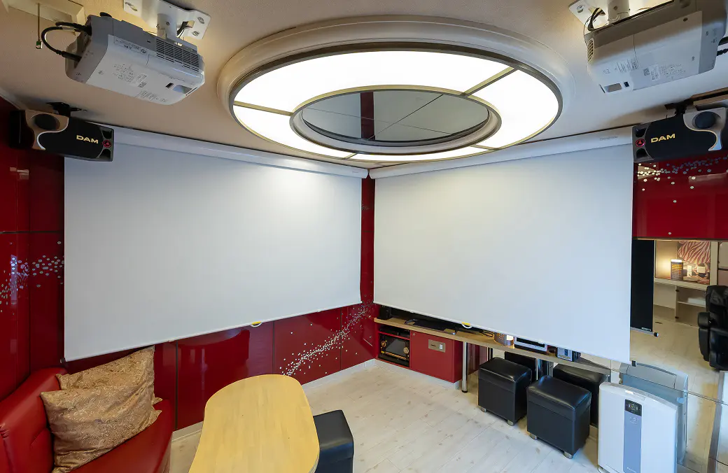 大画面スクリーンに映し出される映像は、まるでプライベートシアター。映画やライブ映像を楽しめば、日常を忘れる贅沢なひとときに。