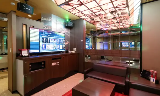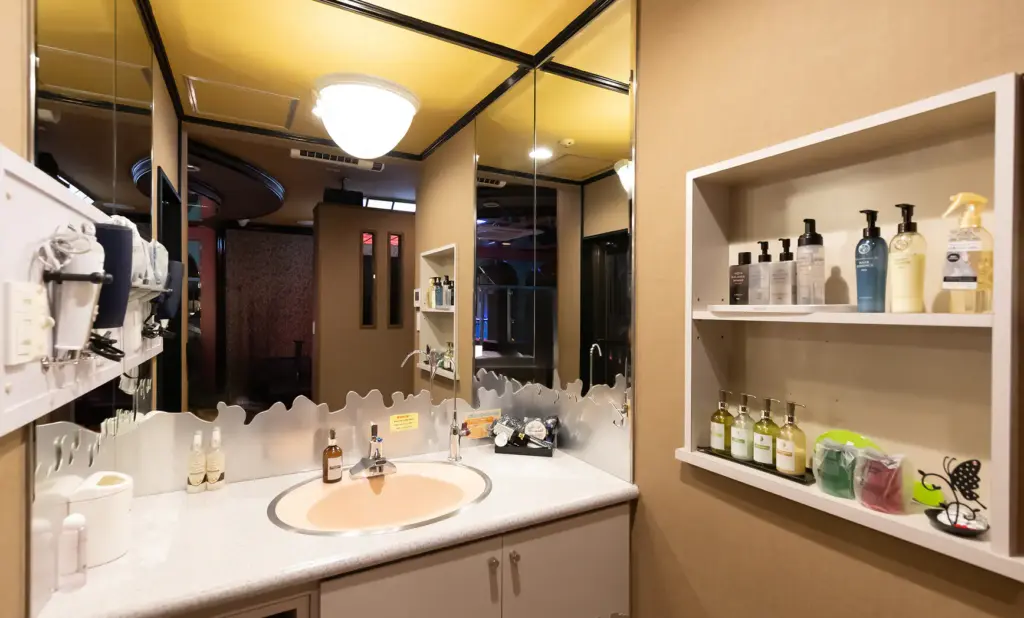 壁一面に施された鏡が、空間に奥行きと華やかさをプラス。